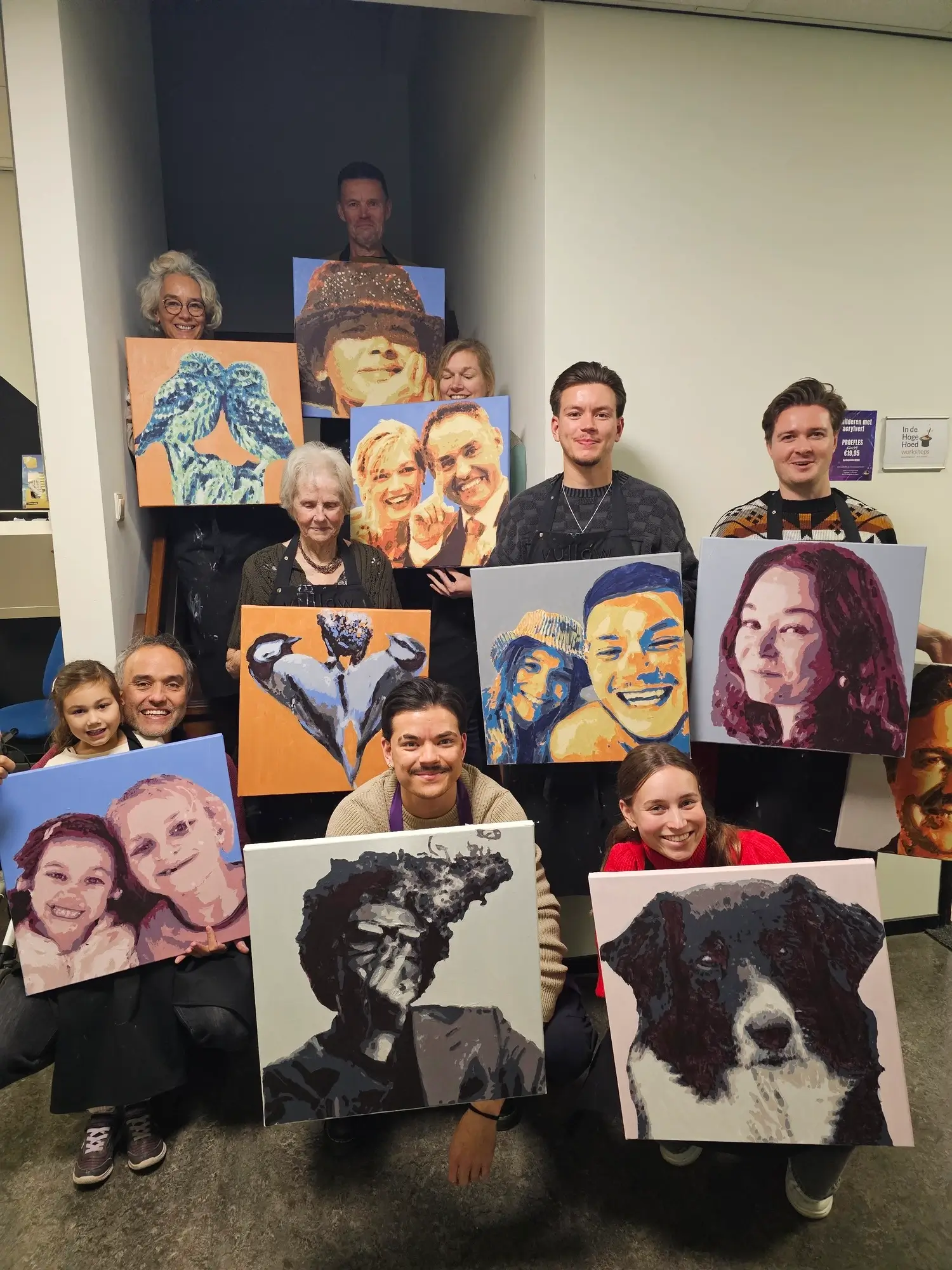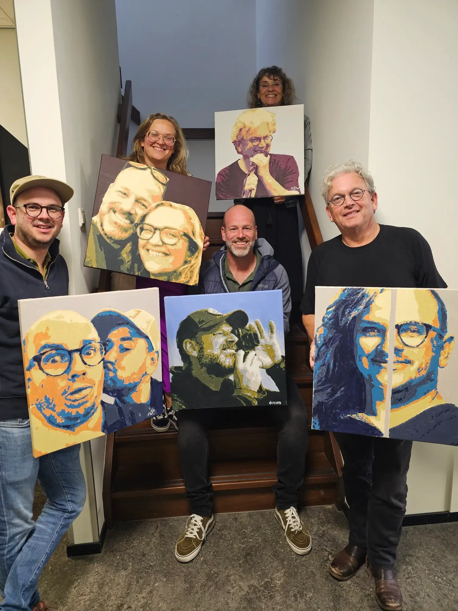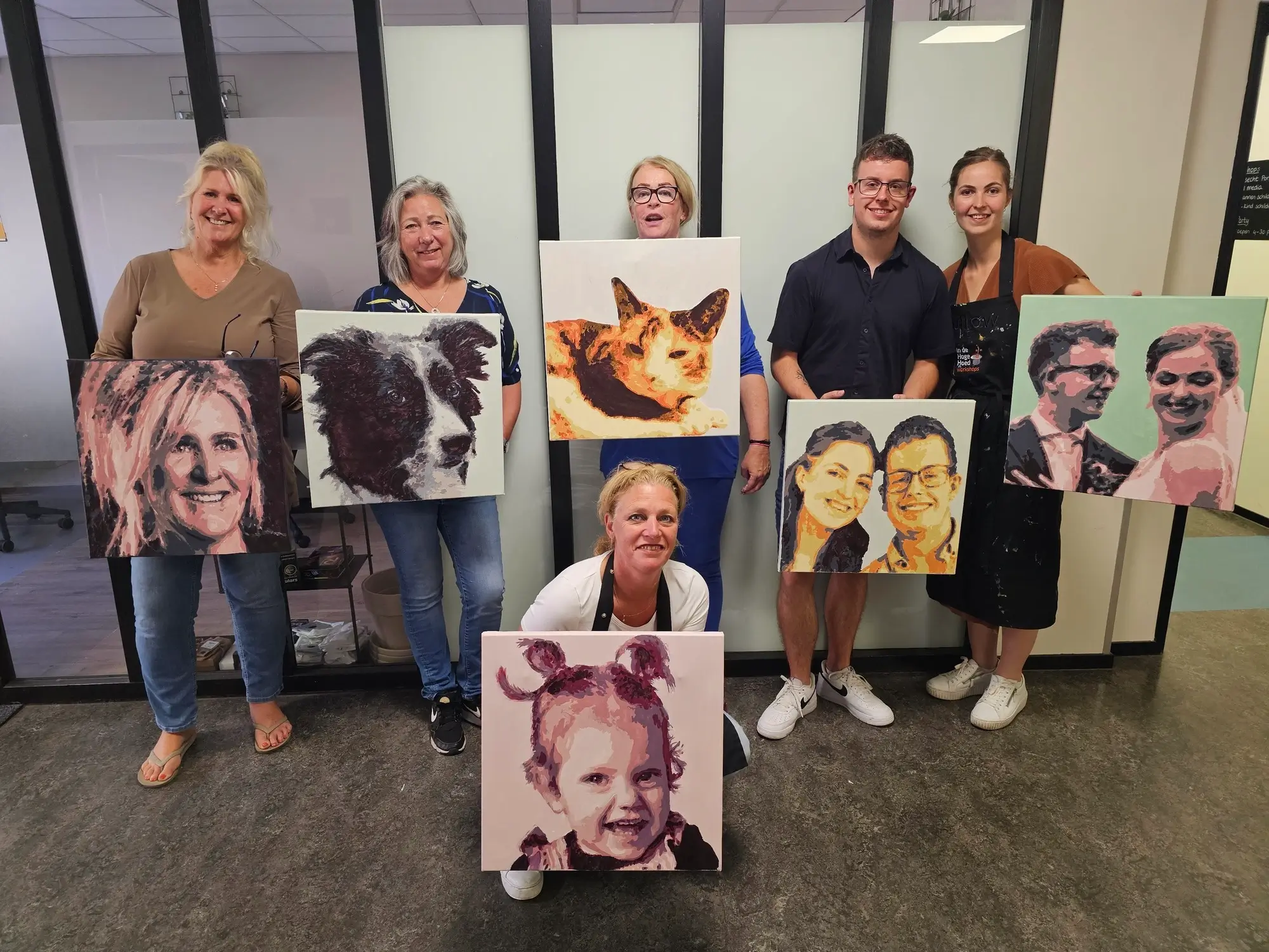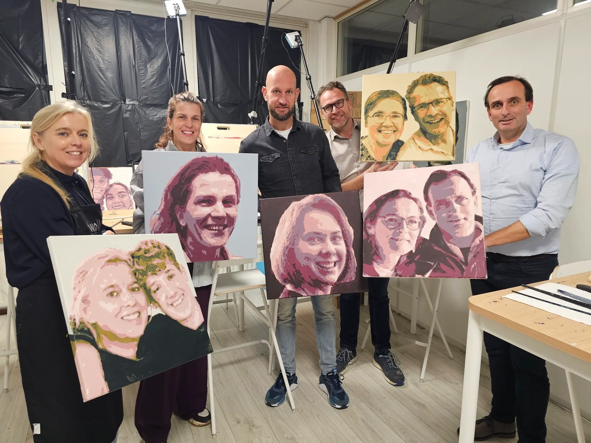 Op zoek naar een origineel en inspirerend bedrijfsuitje? Onze bedrijfsuitje portretschilderen biedt een unieke ervaring waarbij collega’s op een creatieve manier samenwerken en individueel een prachtig portret schilderen. Een gegarandeerd succes voor een onvergetelijke teambuilding activiteit!