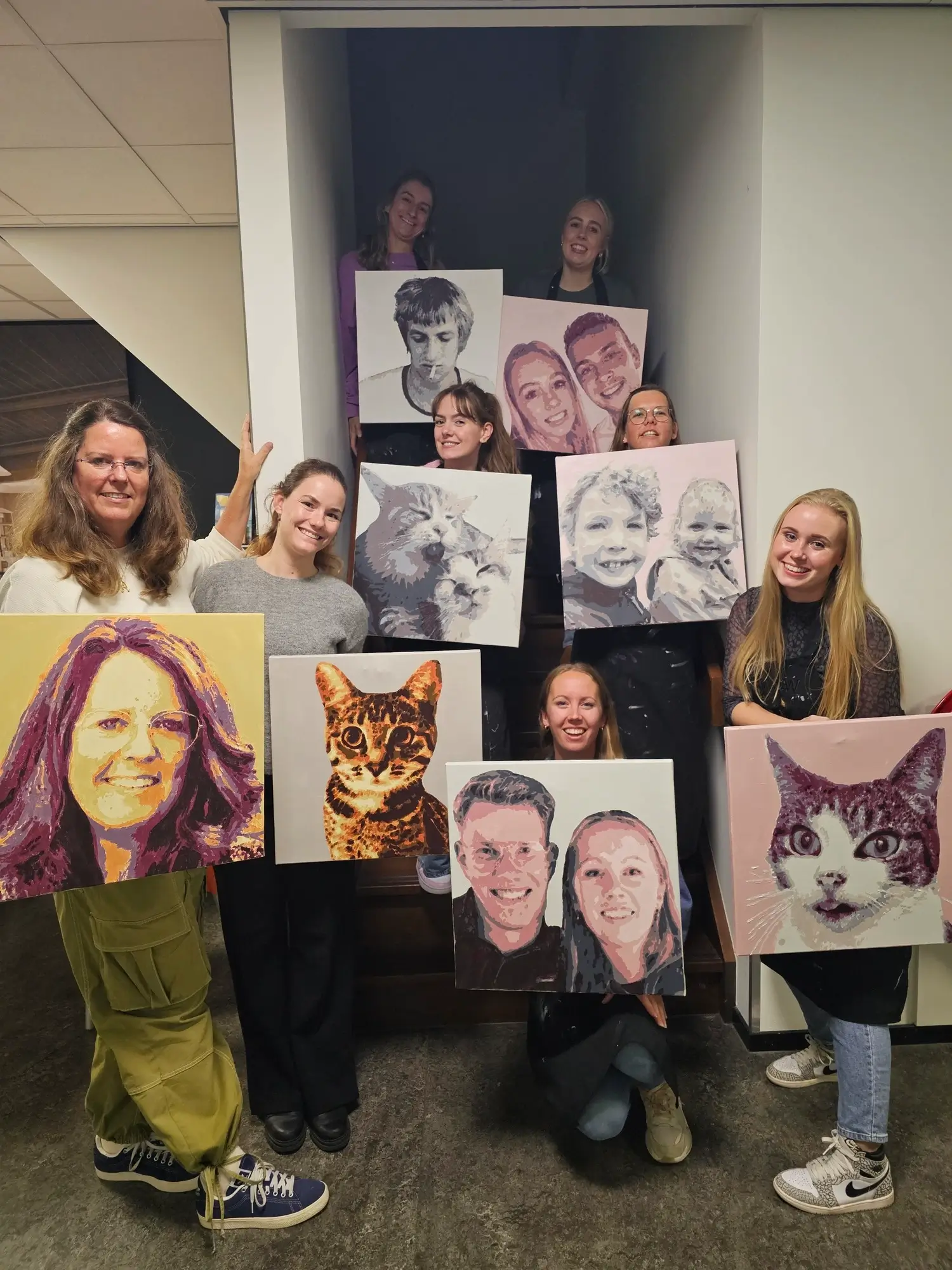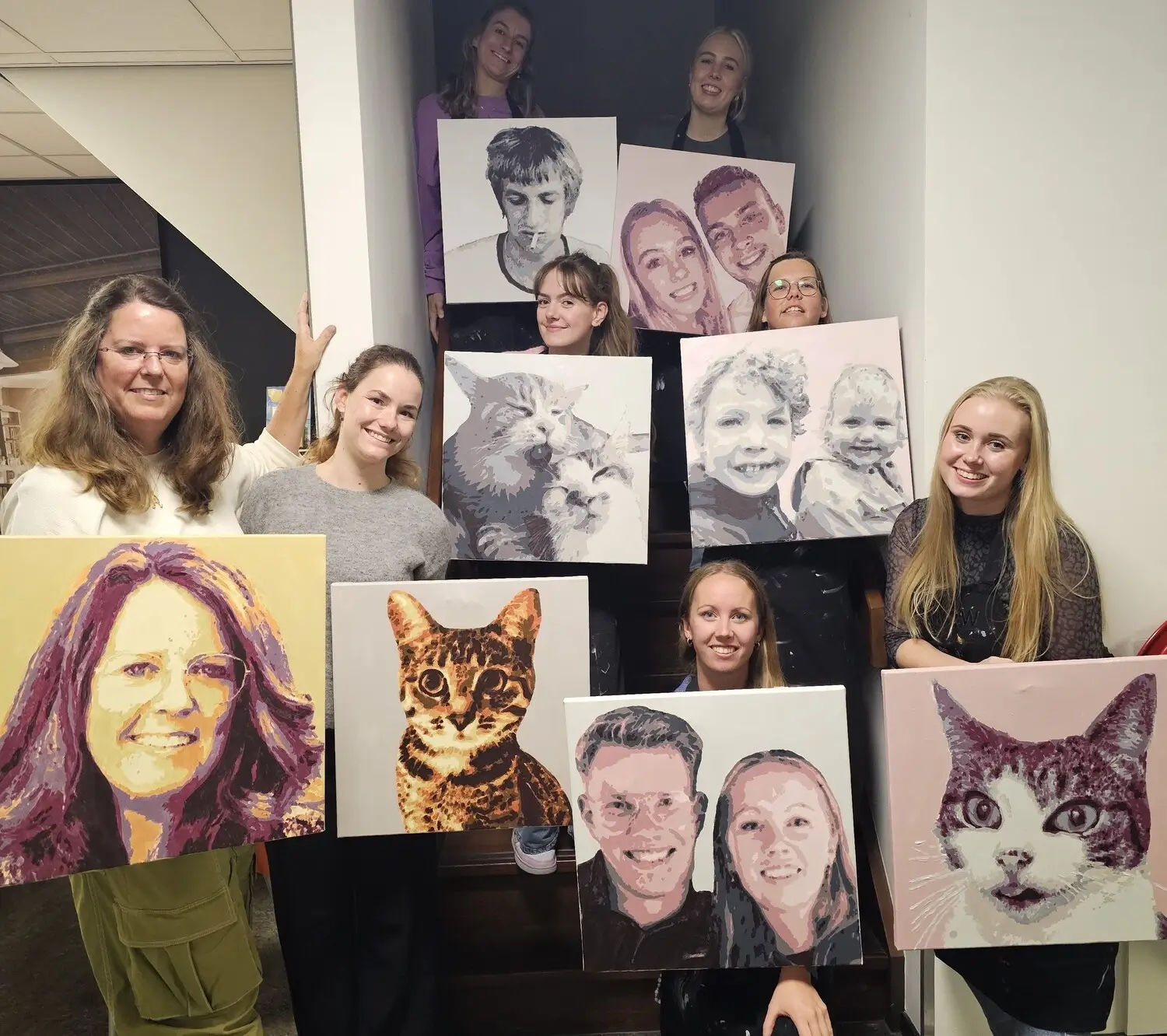 Wij zorgen voor alle voorbereidingen, zodat jullie team zich volledig kan concentreren op het schilderen van hun eigen portret tijdens dit unieke bedrijfsuitje. Kom genieten van een gezellige, ontspannen en inspirerende ervaring en creëer een levensecht portret als een bijzonder aandenken aan dit geslaagde bedrijfsuitje!