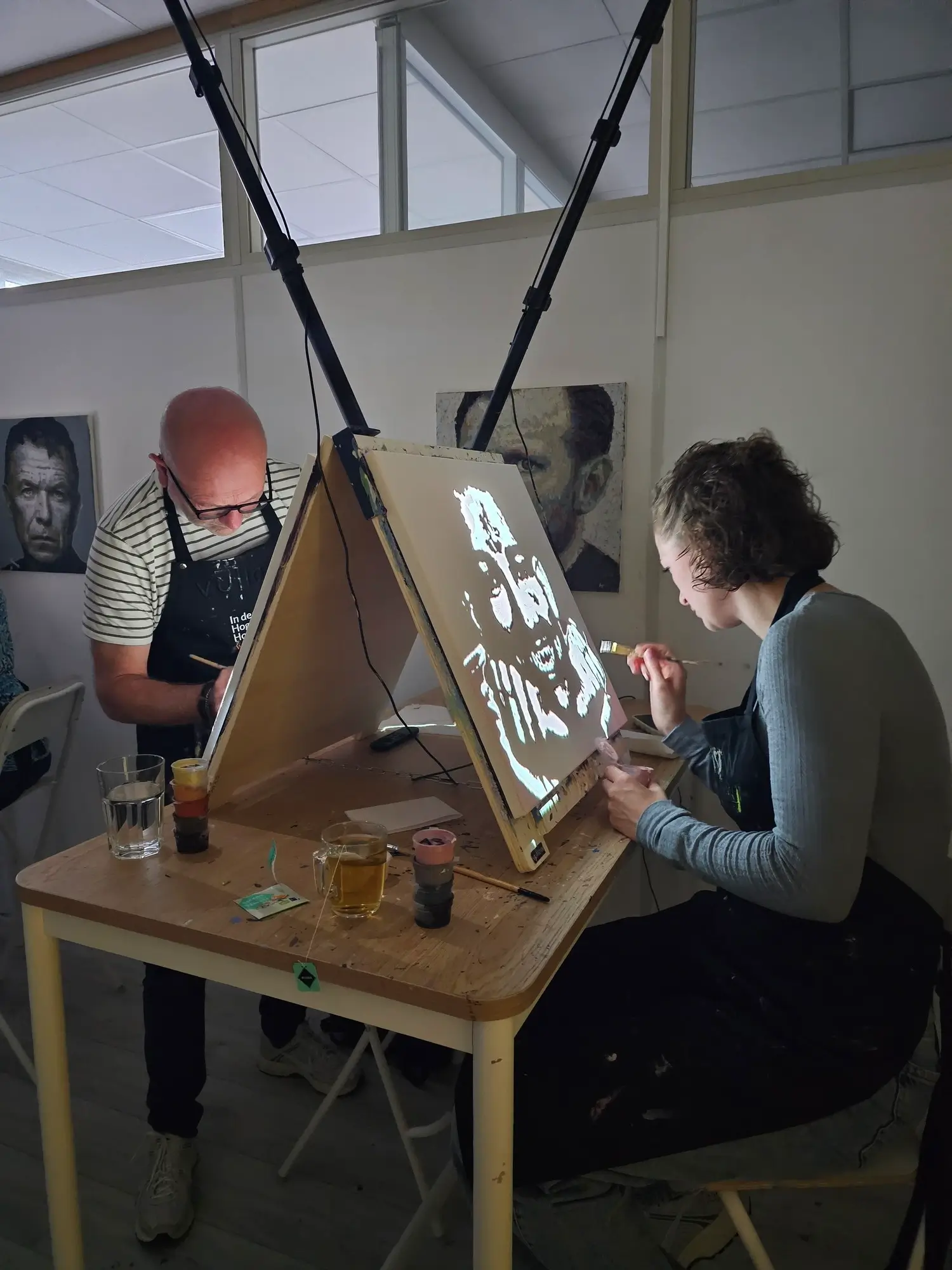 Stel je voor: een bedrijfsuitje vol ontdekkingen, waarbij collega’s elkaar op een nieuwe, creatieve manier leren kennen. Het gezamenlijk creëren van kunstwerken bevordert de teamgeest en zorgt voor een ontspannen en inspirerende sfeer. Iedereen gaat met een uniek, zelfgemaakt portret naar huis, een blijvende herinnering aan dit bijzondere bedrijfsuitje.