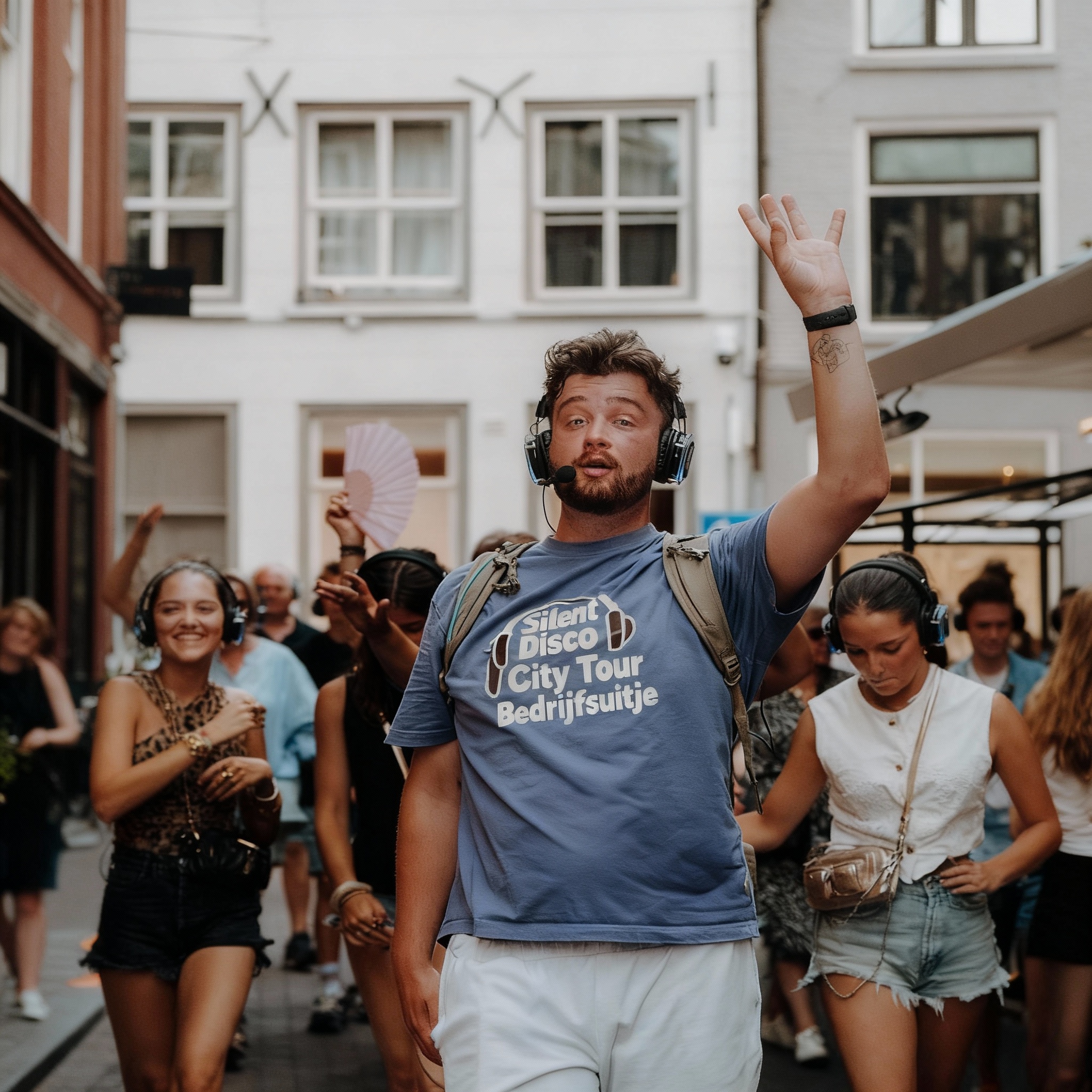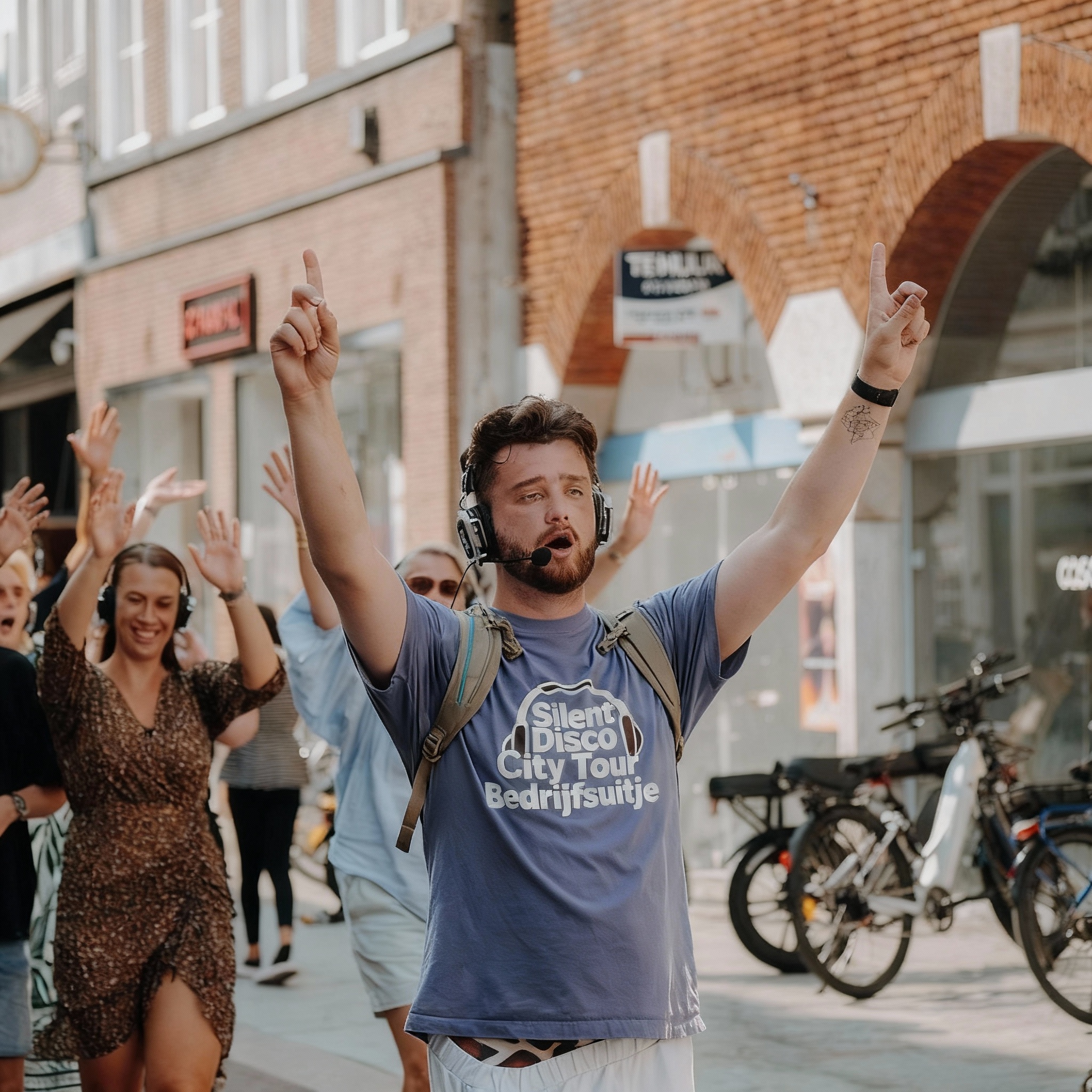 Een uur lang dansen, lachen en zingen dwars door de stad, terwijl iedereen een draadloze koptelefoon draagt. Jullie worden begeleid door een enthousiaste gids die bruist van humor en creativiteit en jullie meeneemt op een muzikale ontdekkingsreis. Vergeet standaard stadswandelingen: dit is een mobiele dansvloer waarbij de stad zelf het decor vormt en voorbijgangers jullie jaloers nakijken.